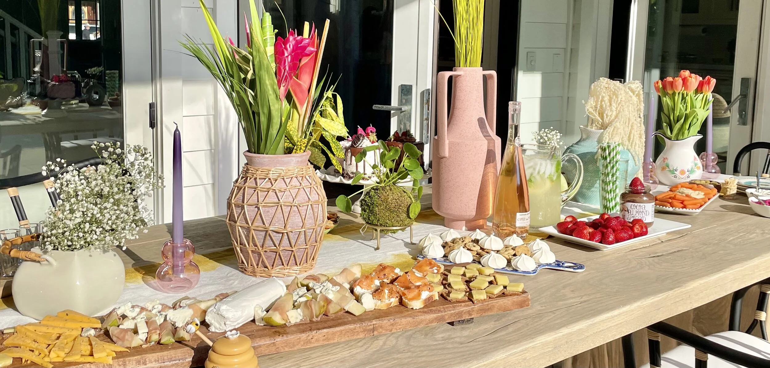 Embrace Color.. This season is all about color! Creating a tablescape of flowers might be exactly what your table is missing. I’ve been finding the most beautiful (and affordable) floral arrangements at Trader Joes! Adding fruits and veggies to your menu can also bring lots of color to your display. And, of course…what a better way to serve your guests than with an In Good Taste melamine or acrylic tray and accompanying coasters.